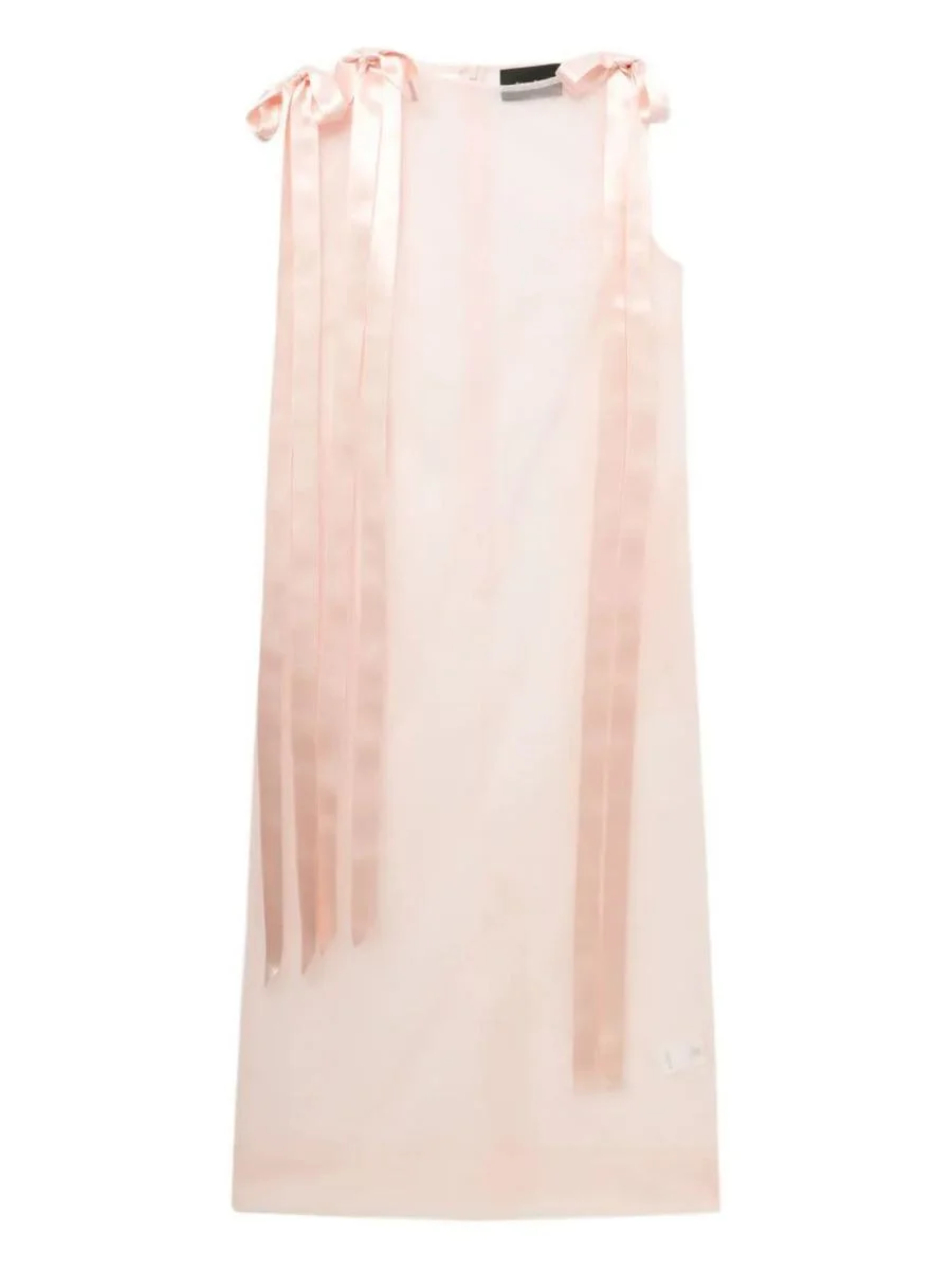 SHEER BOW RIBBON TAIL DRESS Gender: Women Material: SELF:100% PA RIBBON:100% POLYESTER Color: PALE PINK Made in: Imported Product ID: 7410 0069_ *Import tax/duty will be calculated at checkout (If applicable)