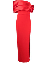 bright red off-shoulder satin trim short sleeves front slit long length Gender: Women Material: 95% POLYESTER 5% ELASTANE Color: RED Made in: Imported Product ID: OS38019RED *Import tax/duty will be calculated at checkout (If applicable)