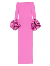 Talia off-the-shoulder faille-trimmed crepe gown Pink