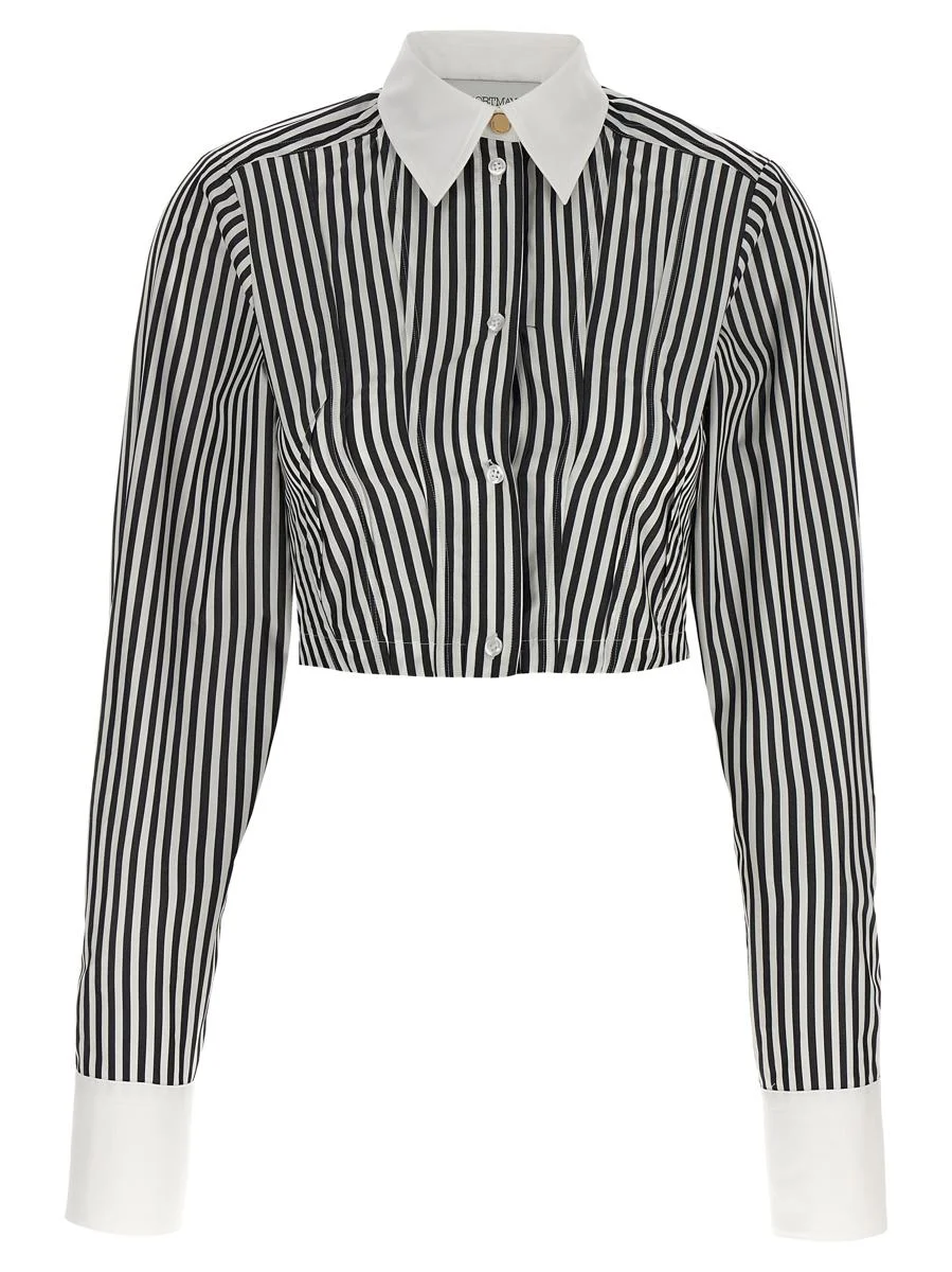 Striped poplin cropped shirt