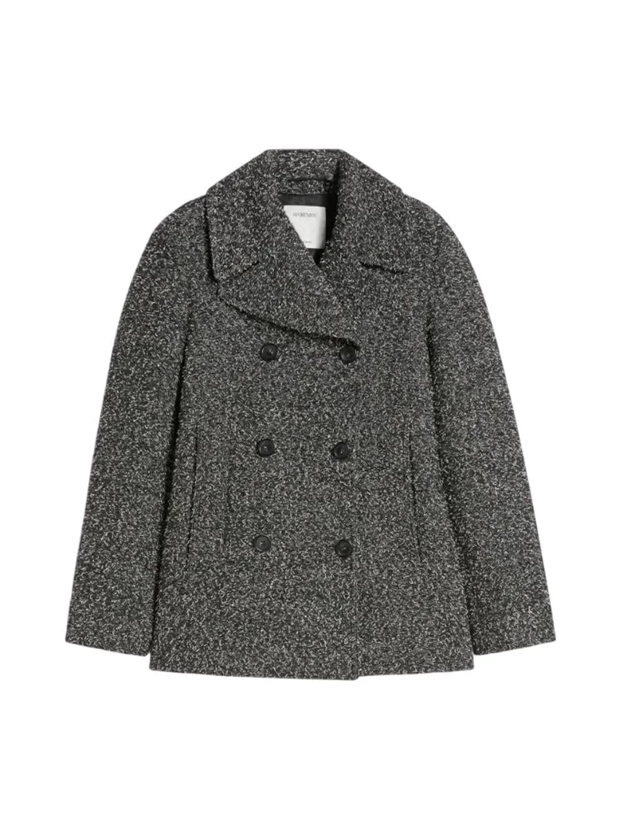 Double-Breasted Wool Jacket - BLACK Loose-fit jacket in a textured wool blend, featuring a double-breasted construction and wide lapels that reach almost to the shoulder. Featuring welt pockets to keep your hands warm in any weather. Wool blend Donegal jacket Slightly oversized fit Lapel collar with prominent, stitched lapel Double-breasted button closure Side welt pockets Lined Regular fit Fabric: 48% virgin wool, 29% cotton, 14% polyester, 9% polyamide; lining: 50% acetate, 50% viscose. ID 2522086032600 Gender: Women Material: WOOL Color: Black Made in: Italy Product ID: 95916 2522086032600 95352 *Import tax/duty will be calculated at checkout (If applicable)