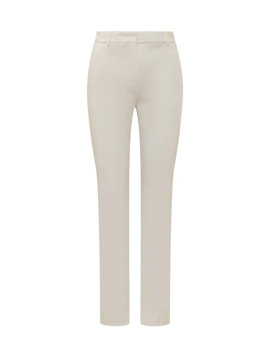 Trousers made of pure cotton jersey with Milano stitch work, for a compact and elegant effect. The construction is masculine, with a covered hook at the waist and a pre-constructed inner belt like the tailored models. The fit is slim, with straight legs emphasised by the ironed crease at the front and back. - Hip and welt pockets on the back - Slim fit DESIGNER ID: 2412781031600 001 Gender: WOMEN Material: 100% COTTON Color: WHITE Made in: IT Product ID: 2412781031600 001 *Import tax/duty will be calculated at checkout (If applicable)