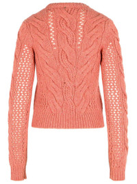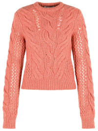 Wool blend sweater, regular fit, rounded neckline, braided pattern and perforated stitches on the chest and sleeves, ribbed hem and cuffs, regular fit Gender: Women Material: 70% WOOL, 30% NYLON Color: PINK Made in: Italy Product ID: 2522366142003 *Import tax/duty will be calculated at checkout (If applicable)