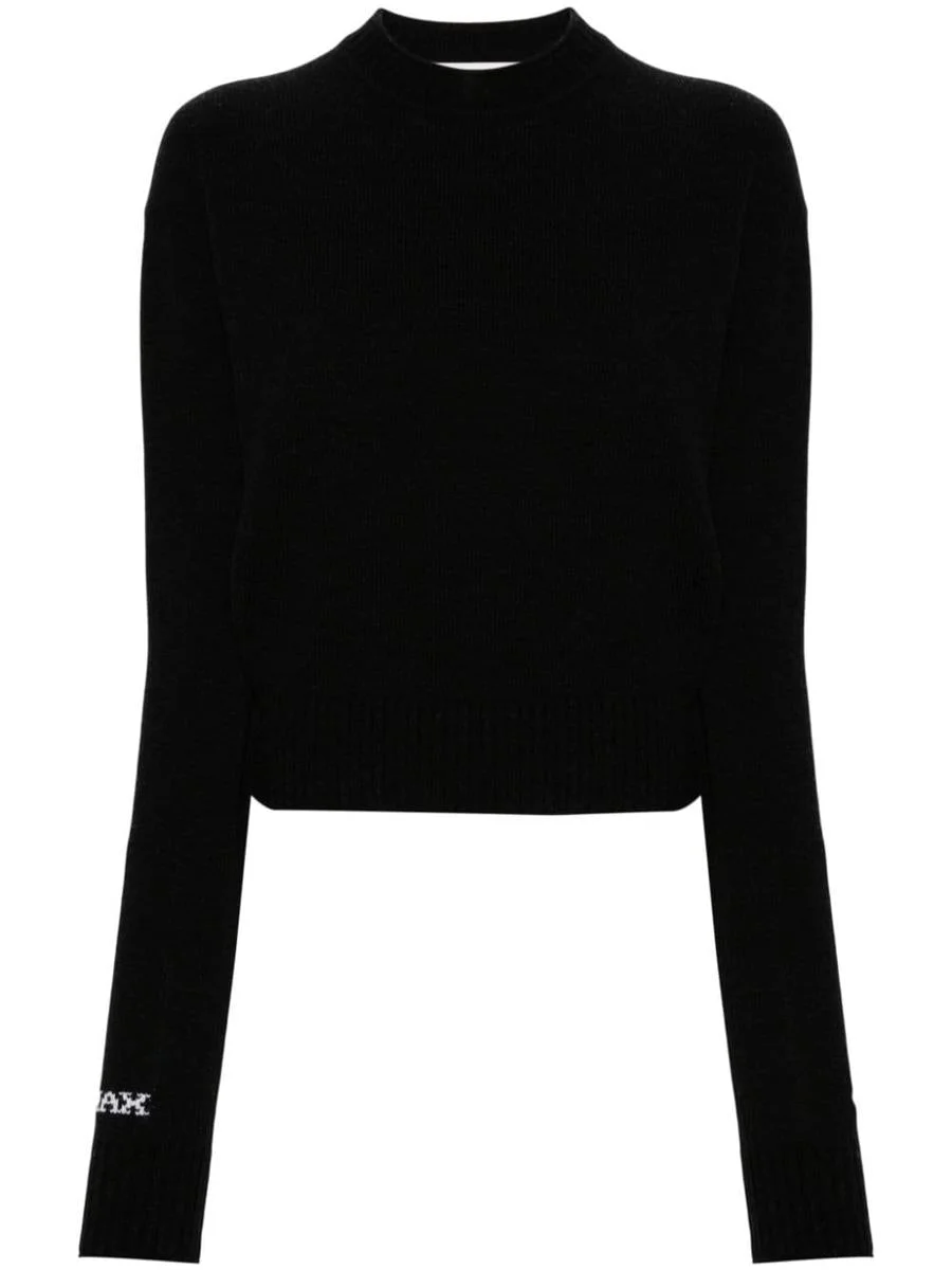 black wool-cashmere blend knitted construction intarsia-knit logo at the sleeve ribbed trim crew neck long sleeves straight hem This piece fits true to size. We recommend you get your regular size Model is 1,75m / 5ft 8in wearing size S Gender: Women Material: WOOL 80% CASHMERE 20% Color: Black Made in: IT Product ID: 22366022600015 *Import tax/duty will be calculated at checkout (If applicable)