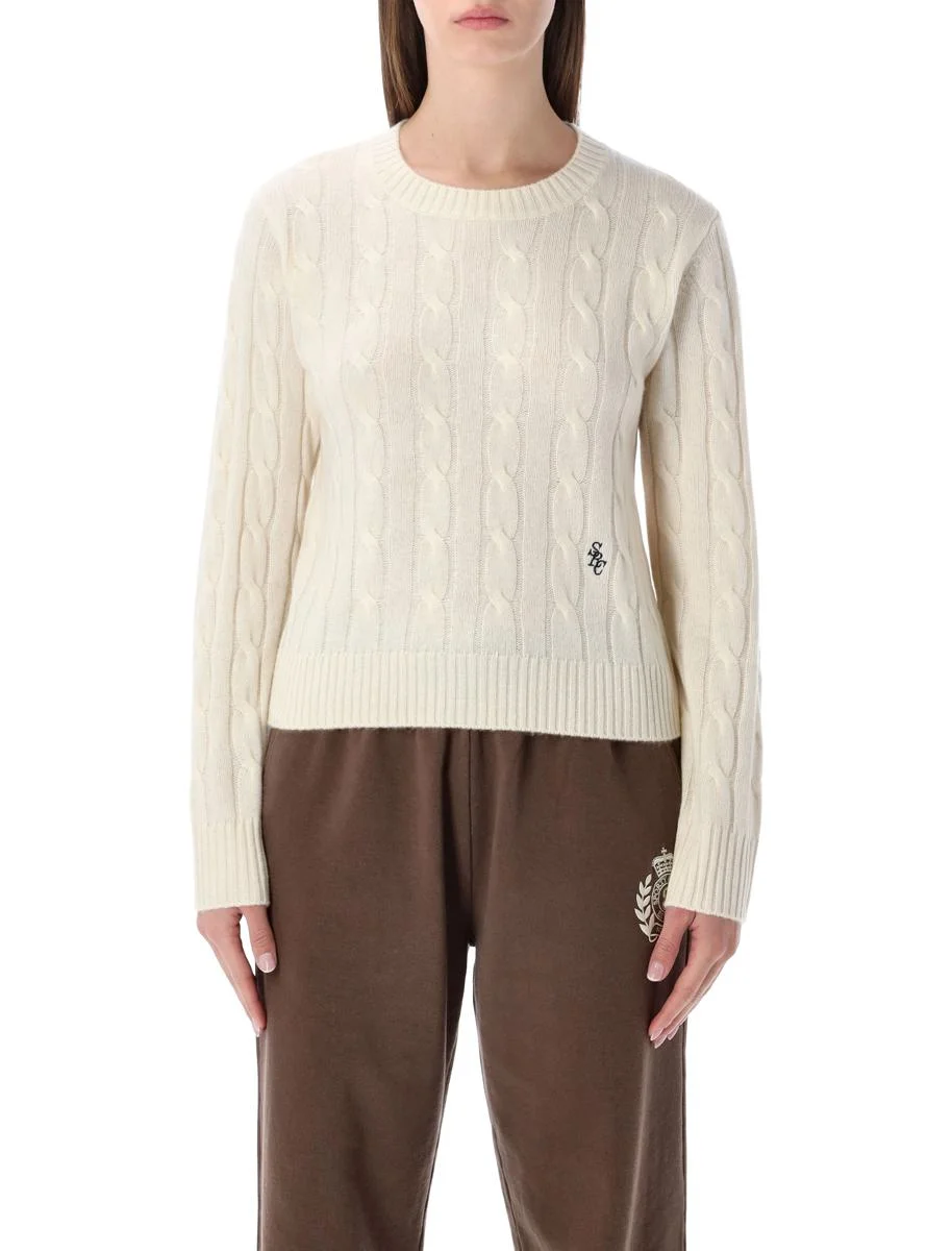 Sporty & Rich Sporty & Rich Cropped Cable-Knit Cashmere Sweater Ecru