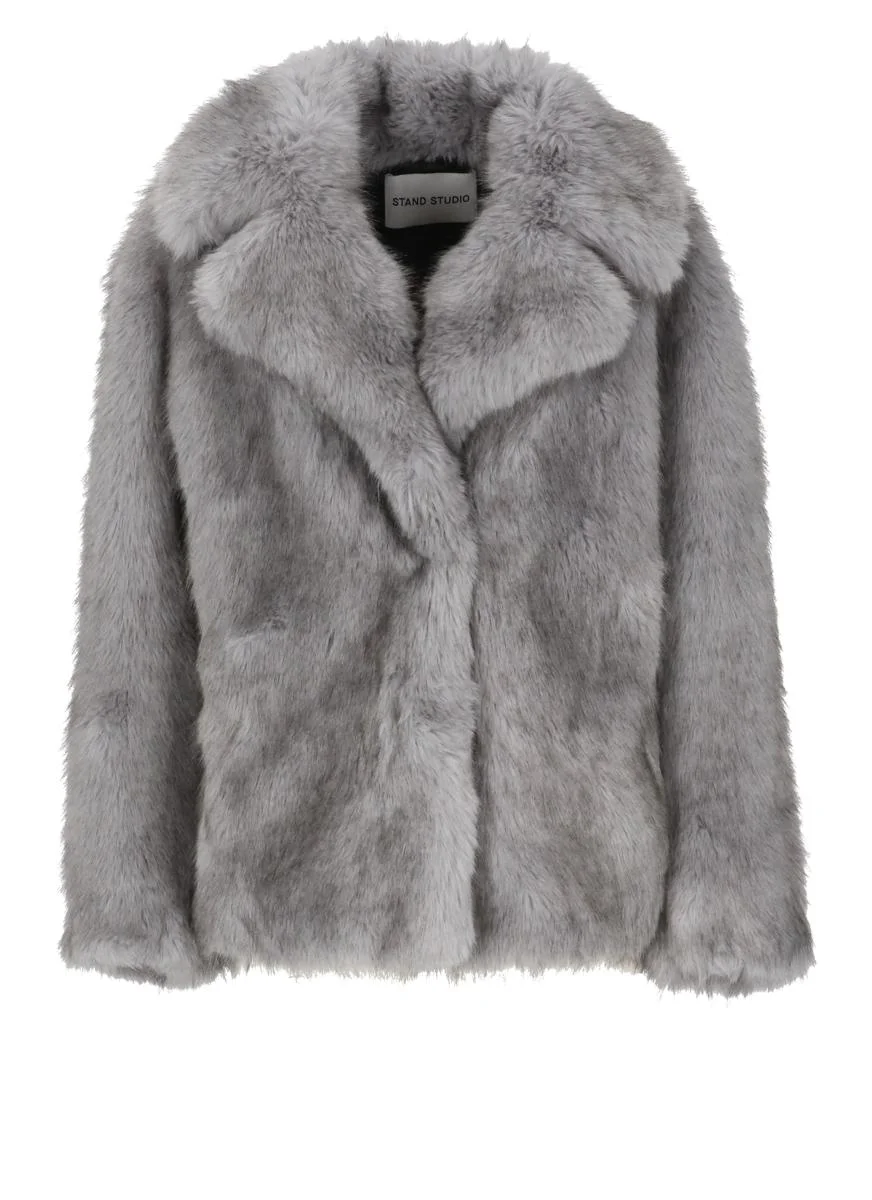 - Grey Stand Studio faux fur jacket for woman - Collar - Long sleeves - Two side slit pockets - Front hook fastening Model's height is 179 cm and she wears a size 36 Gender: Women Material: 100% POLYESTER Color: GREY Made in: Imported Product ID: 66552916481001 *Import tax/duty will be calculated at checkout (If applicable)