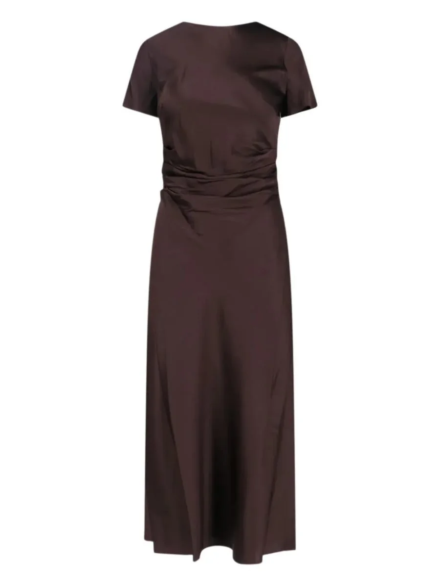 Phare Midi Dress with Ruffles Care Instructions Dry clean only ID R25F2251SN Gender: Women Material: SILK Color: BROWN Made in: Imported Product ID: 96107 R25F2251SN 95596 *Import tax/duty will be calculated at checkout (If applicable)