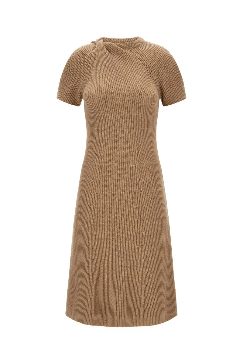 short-sleeve ribbed-knit midi dress