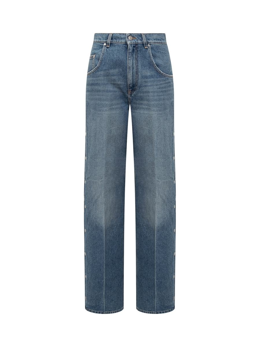 Straight fit jeans. Zipper and button closure. Belt loops. Five pockets.Logo tag on back. Side buttons. Gender: Women Material: 100% COTTON Color: BLUE Made in: IT Product ID: 6D03373SQH00 4233 *Import tax/duty will be calculated at checkout (If applicable)