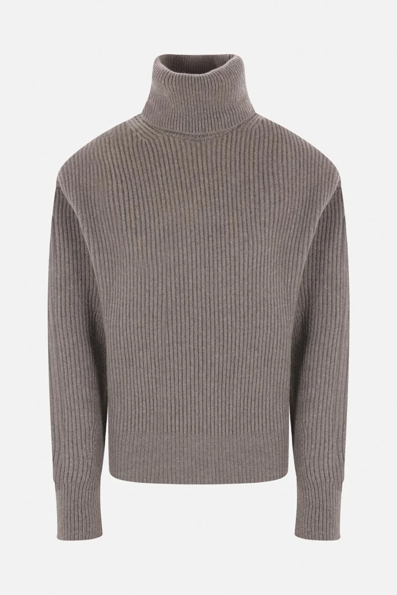 Stella McCartney's turtleneck crafted in taupe brown wool and cashmere ribbed-knit. It features high neck, removable shoulder pads, long sleeves with thumbhole and straight hem. Gender: WOMEN Material: T: 50% CASHMERE, 50% WOOL Color: GREY Made in: RO Product ID: 6K08703S25282811 *Import tax/duty will be calculated at checkout (If applicable)