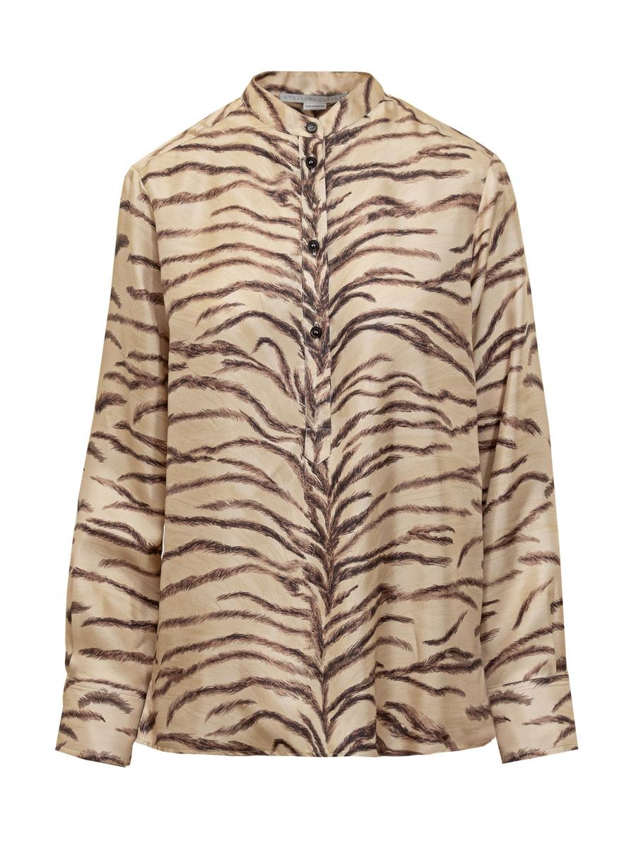 Silk shirt with long sleeves. Mandarin collar. Button closure. Button cuffs. Tiger motif. Gender: Women Material: 100% SILK Color: Beige Made in: RO Product ID: 6200393ES210 9500 *Import tax/duty will be calculated at checkout (If applicable)