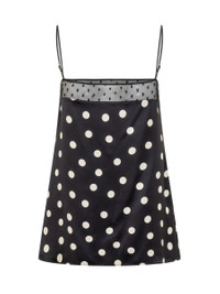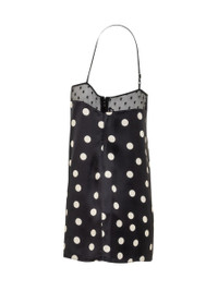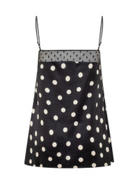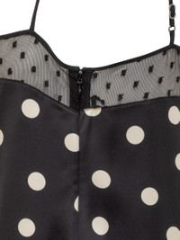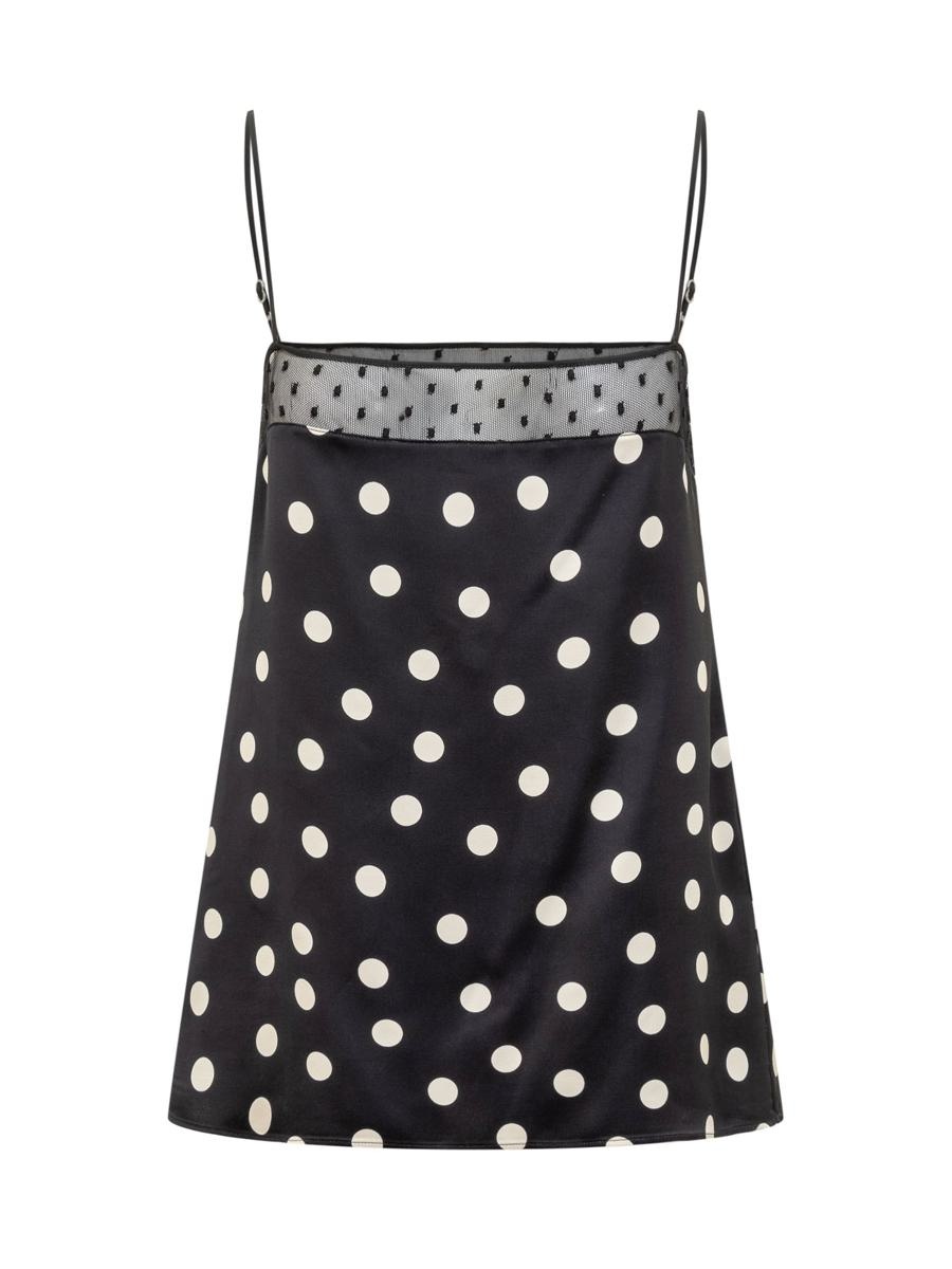 Viscose top. Straight neckline with thin straps. Side zipper closure. All over polka dot pattern. Mesh insert with embroidered texture on top. Gender: Women Material: 100% VISCOSE Color: Black Made in: PL Product ID: 6T01953DU350 1028 *Import tax/duty will be calculated at checkout (If applicable)