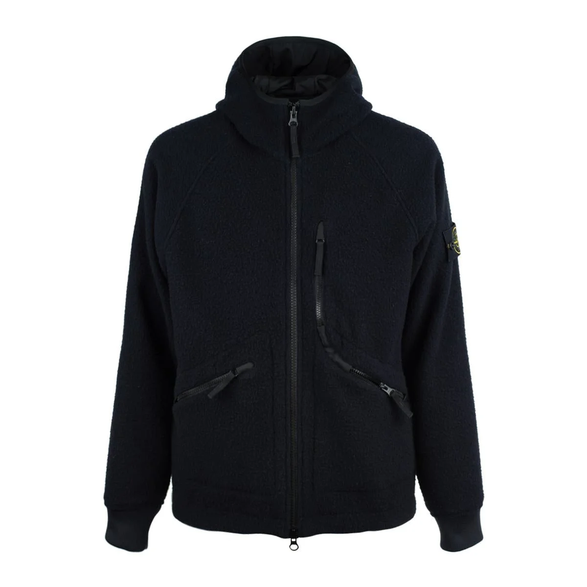 Color Item: Blue | Hooded jacket made of special wool and nylon cloth | Ratteen finishing process gives the surface its characteristic knotty look | Garment treated with a special anti-drip agent | Nylon ripstop lining | Nylon twill-lined hood with webbing trim | Sleeves raglan | Vertical left chest pocket with zipper | Slanted zippered pockets | Inside pocket with button and embroidered Compass logo | Stone Island badge on left sleeve | Ribbed elastic cuffs | Inner drawstring bottom hem | Two-way zipper closure | Main fabric: 80% Virgin Wool, 20% Polyamide | Ribbed Fabric: 100% Polyester | Main Lining: 100% Polyamide | Hood Lining: 100% Polyamide | Coating: 100% Polyurethane Resin Gender: Men Material: WOOL, SYNTHETIC MATERIALS Color: BLUE Made in: Italy Product ID: K2S154100060S0214 *Import tax/duty will be calculated at checkout (If applicable)