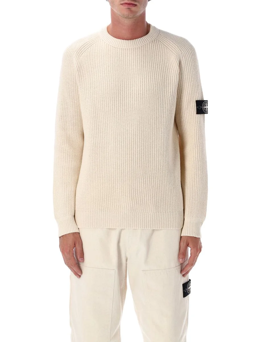Part of the Stone Island Raw Beauty project, this crewneck jumper is crafted from regenerated cotton sourced from the brand's own production chain. The fisherman’s rib knit and raglan sleeves lend a rugged yet relaxed appeal, while the white fabric research badge marks its innovation. Finished with subtle ribbed detailing. Recycled cotton from internal regeneration process Fisherman’s rib knit in gauge 5 Ribbed crewneck and hem Raglan sleeves with ribbed bands Stone Island Badge on sleeve Loose fit Andrea is 1,90 m and wears size L Gender: Men Material: 100% COTTON Color: Beige Made in: Romania Product ID: 25AS155100012S00TA#V0093 *Import tax/duty will be calculated at checkout (If applicable)