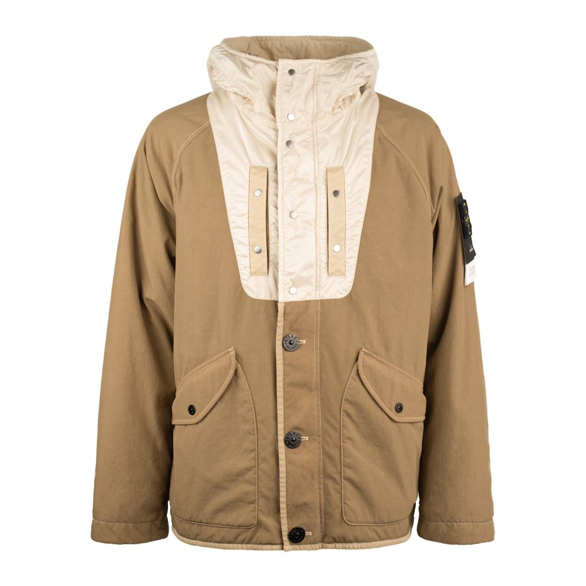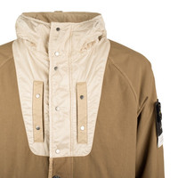 Item Color: Cookie | Hooded jacket subjected to anti-drip treatment | 100% nylon fabric jacket with panama weave, iridescent nylon canvas parts and polyester-cotton terry lining | Garment-dyed pattern with dual-color recipes | Hood and chest applique in New Silk Light, with 2 vertical chest pockets edged in nylon tape with button closure | Raglan sleeves | Slanted hand pockets with flap and button closure | Stone Island badge on left sleeve | Button closure on cuffs. Back yoke at bottom | Double-slider zipper closure hidden by button placket | Main fabric: 100% Polyamide | Hood: 100% Polyamide | Coating: 100% Polyurethane resin | Body lining: 60% Cotton, 40% Polyester | Sleeve lining: 100% Polyamide | Sleeve padding: 100% Polyester Gender: Men Material: SYNTHETIC MATERIALS Color: Beige Made in: IT Product ID: 811544021 V0094 *Import tax/duty will be calculated at checkout (If applicable)