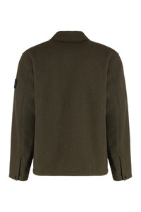 Overshirt in wool and nylon This shirt is finished with ratteen work that creates a knotted appearance, made from a quality fabric in a military green shade. It features a classic collar, a front closure with automat buttons, and a pocket with a button, offering practicality and a versatile style. The long sleeves ensure warmth and protection, making it ideal for the mid-seasons. It can easily be paired with different outfits, from casual looks to more formal occasions. Perfect for an outing in the city or for everyday use. 80% Virgin wool, 20% Polyamide, 100% Polyamide Gender: Men Material: POLYAMIDE Color: GREEN Made in: Italy Product ID: 1200021S0214_V0054 *Import tax/duty will be calculated at checkout (If applicable)