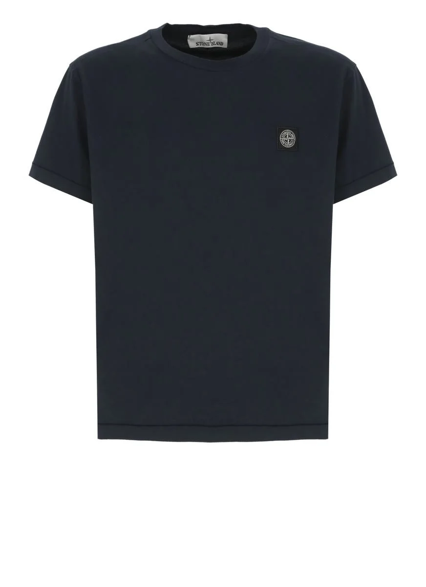- Blue Stone Island cotton t-shirt for man - Round neck - Short sleeves - Iconic contrasting color front logo Model's height is 179 cm and she wears a size L Gender: Men Material: 100% COTTON Color: BLUE Made in: Imported Product ID: K2S15 2100027S0013V0020 *Import tax/duty will be calculated at checkout (If applicable)