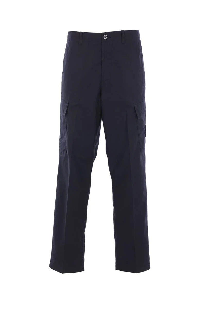 Stone Island cargo trousers made of blue cotton. Featuring a front closure with metal button and zip, belt loops, multiple pockets, and a center crease. The design is completed with the iconic removable logo badge. Gender: Men Material: MAIN FABRIC: 100%COTTON Color: BLUE Made in: Imported Product ID: 3100019S00F1V0020 *Import tax/duty will be calculated at checkout (If applicable)