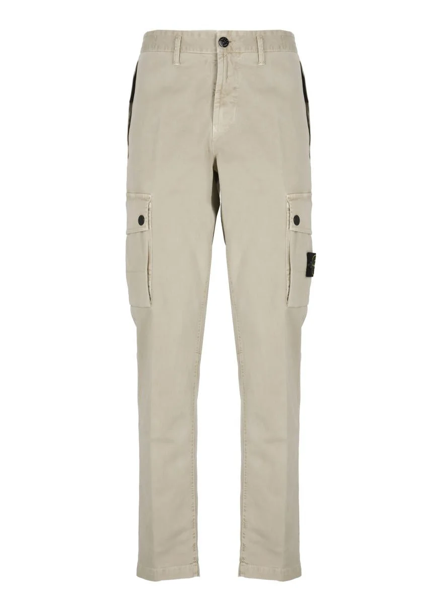 - Beige Stone Island cotton pants for woman - Belt loops - Front zip and button fastening - Two side pockets with zip - Two cargo pockets with side flap - One rear welt pocket with button - Side contrasting color Iconic logoed and removable patch Model's height is 190 cm and he wears a size 34 Gender: Men Material: 97% COTTON 3% ELASTANE Color: Beige Made in: Romania Product ID: K2S15 3100034S00L1V019A *Import tax/duty will be calculated at checkout (If applicable)