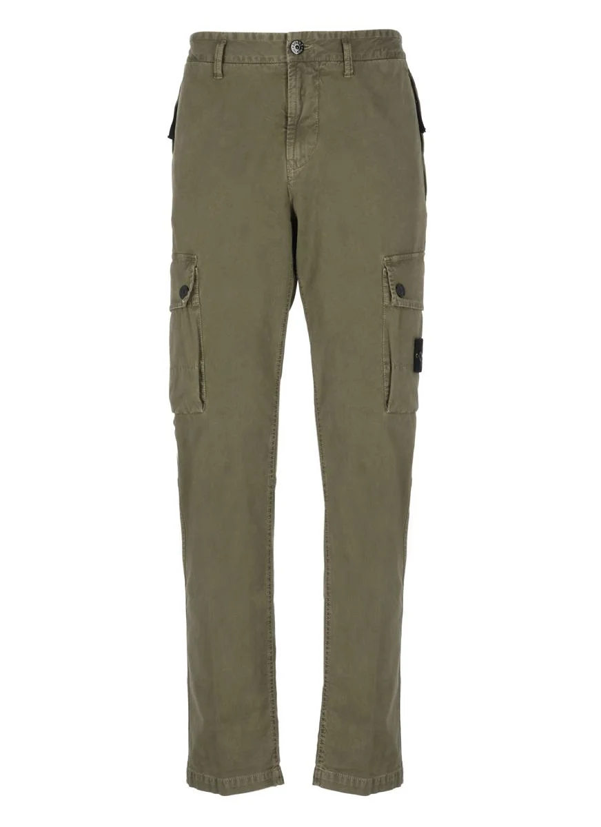 - Green Stone Island cotton pants for woman - Belt loops - Front zip and button fastening - Two side pockets with zip - Two cargo pockets with side flap - One rear welt pocket with button - Side contrasting color Iconic logoed and removable patch Model's height is 190 cm and he wears a size 34 Gender: Men Material: 97% COTTON 3% ELASTANE Color: GREEN Made in: Romania Product ID: K2S15 3100034S00L1V0154 *Import tax/duty will be calculated at checkout (If applicable)