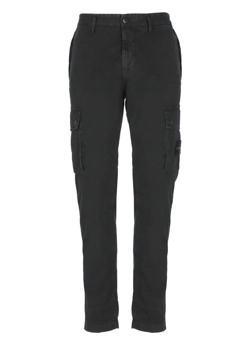 - Black Stone Island cotton pants for woman - Belt loops - Front zip and button fastening - Two side pockets with zip - Two cargo pockets with side flap - One rear welt pocket with button - Side contrasting color Iconic logoed and removable patch Model's height is 190 cm and he wears a size 34 Gender: Men Material: 97% COTTON 3% ELASTANE Color: Black Made in: Romania Product ID: K2S15 3100034S00L1V0129 *Import tax/duty will be calculated at checkout (If applicable)