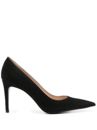 Stuart Weitzman Black suede slip-on pumps, pointed toe, stiletto heel, leather insole with logo Gender: Women Color: Black Made in: Italy Product ID: STUARTPOWER85SUEBLK *Import tax/duty will be calculated at checkout (If applicable)