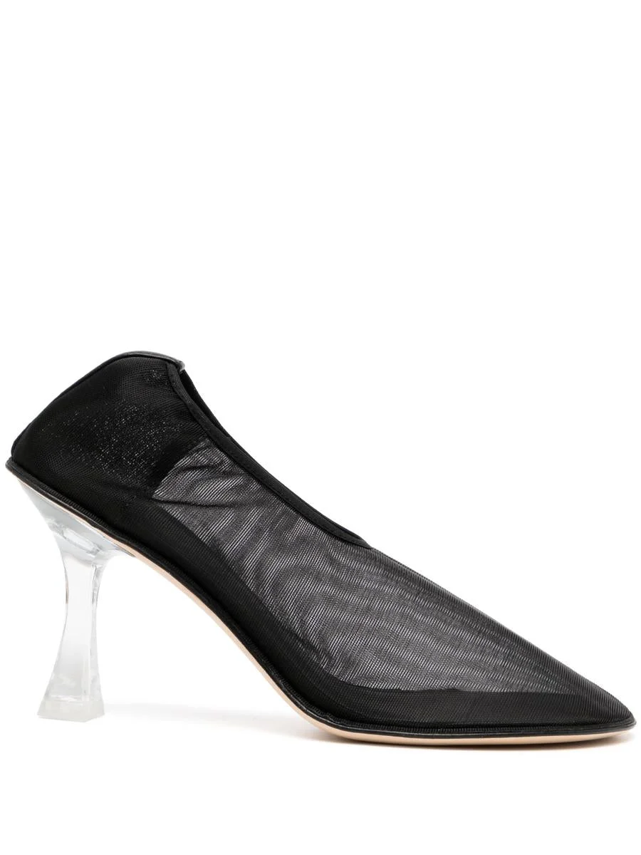 black slip-on style elasticated band round toe transparent stiletto heel HEEL: 9.0 Centimetres Gender: Women Material: 100% NYLON Color: MULTICOLOR Made in: Imported Product ID: F833MSHBLK *Import tax/duty will be calculated at checkout (If applicable)