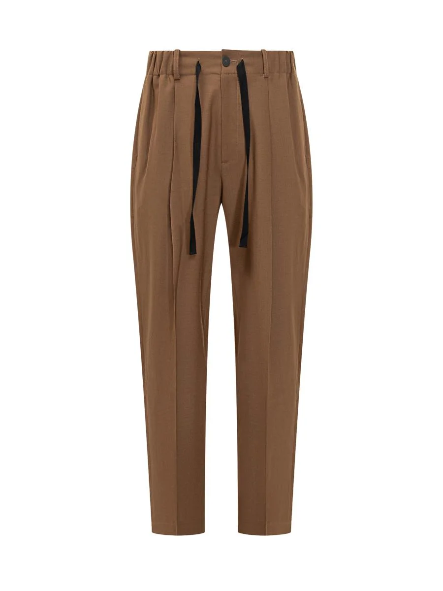 Studio Nicholson pants in brown with elasticized waistband, drawstring waistband and tapered silhouette. Gender: Men Material: 100% WOOL Color: BROWN Made in: Imported Product ID: NOAMSNM1186 TOBACCO *Import tax/duty will be calculated at checkout (If applicable)