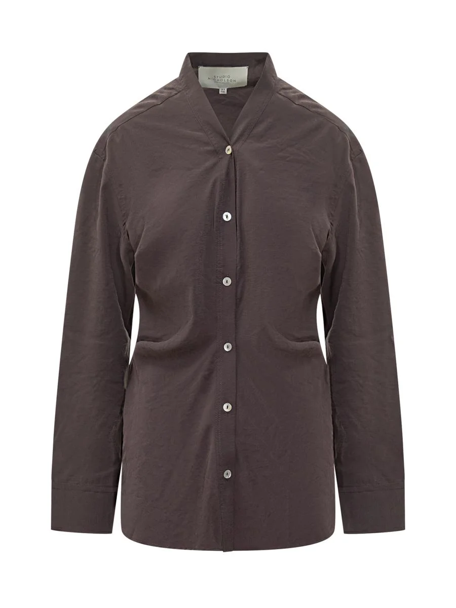 Brown cotton Studio Nicholson shirt with V-neck and button closure. Gender: Women Material: 85% MODAL, 15% POLYESTER Color: BROWN Made in: Greece Product ID: ACRESNW 1716 *Import tax/duty will be calculated at checkout (If applicable)