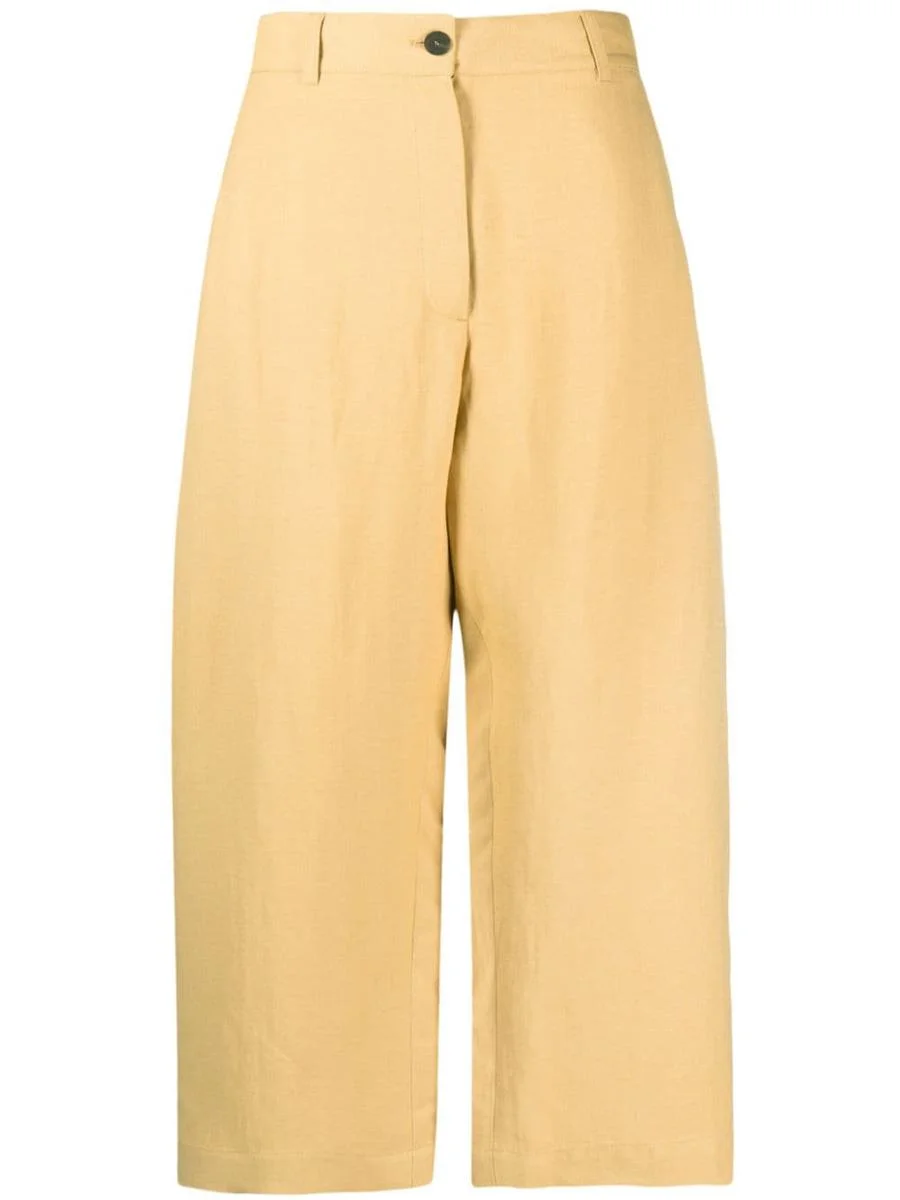 yellow linen high waist front button and zip fastening wide leg This item contains at least 50% materials which are certified or widely recognised as having a lower environmental impact through production and/or manufacturing processes that reduce water consumption and the use of harmful chemicals, or re-use by-products of the production process. Learn more about what makes a product Conscious on our Conscious Criteria page This piece fits true to size. We recommend you get your regular size Model is 1,75m / 5ft 8in wearing size 1 (NUM) Gender: Women Material: COTTON 100% Color: BEIGE Made in: RO Product ID: CHALCOSNW1173SAND *Import tax/duty will be calculated at checkout (If applicable)