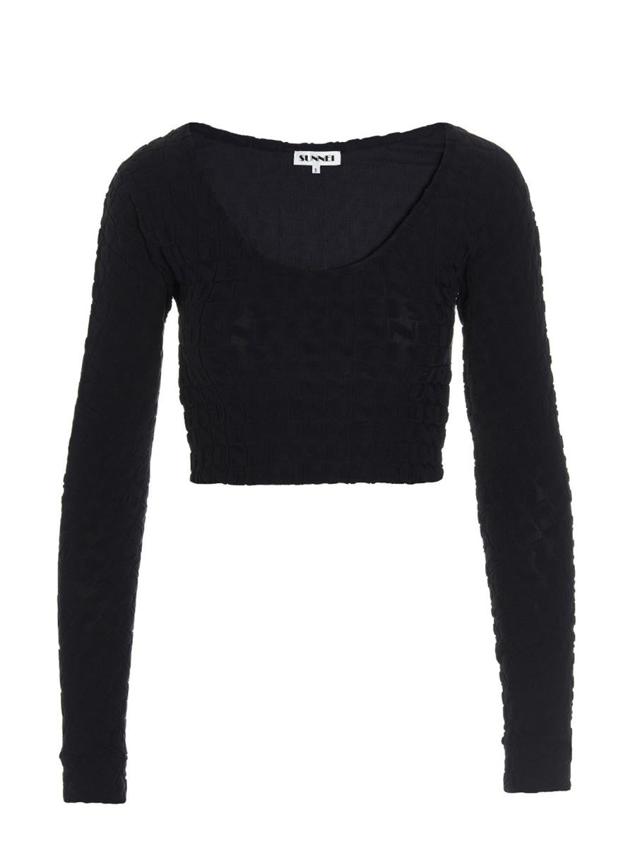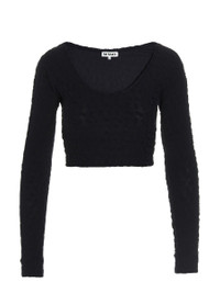 Mkodello cropped crewneck top with all-over embossed logo Gender: Women Color: BLUE Made in: PT Product ID: CRTWWTOP026492 *Import tax/duty will be calculated at checkout (If applicable)