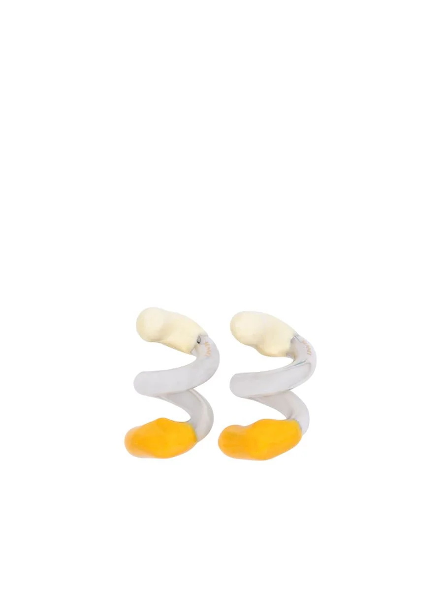 Fusillo Rubberized silver/ beige earrings by Sunnei; the brand brings freshness to the fashion system, creating accessories with an innovative and playful design Swirly shape. Butterfly fastening. Individually hand- rubberized. Nickel free. Silver tone hardware. Color: silver/ beige Made in Italy Material: 80% Brass 20% Synthetic Rubber Gender: Women Material: 80% BRASS 20% SYNTHETIC RUBBER Color: GREY Made in: IT Product ID: CACCWJEW01 9MET007 7514 *Import tax/duty will be calculated at checkout (If applicable)