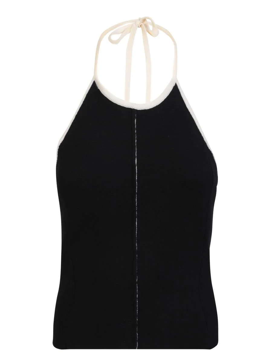 Halterneck black top by Sunnei. The garment presents creativity that is not caged in the concept of trends Halterneck tie fastening. Sleeveless. Open back. Contrasting details. Knitted construction. Regular fit. Straight hem. Color: black/ white Made in Italy Material: 100% Cotton Gender: Women Material: 100% COTTON Color: BLACK Made in: IT Product ID: CRTWWKNW00 8KNT017 001 *Import tax/duty will be calculated at checkout (If applicable)