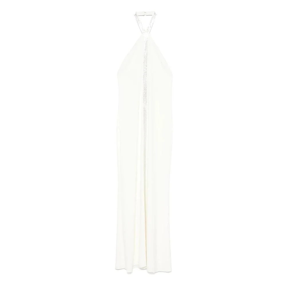 White halter neck embellished central panel sleeveless maxi length Gender: Women Material: OUTER COMPOSITION ACETATE: 74.0%, LINING COMPOSITION ACETATE: 77.0%, OUTER COMPOSITION VISCOSE: 22.0%, LINING COMPOSITION POLYBUTYLENE TEREPHTHALATE (PBT): 23.0%, OUTER COMPOSITION ELASTANE: 4.0% Color: Beige Made in: Italy Product ID: PF2519 105 *Import tax/duty will be calculated at checkout (If applicable)