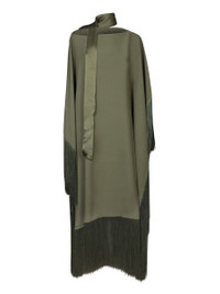 Elegant kaftan in green shade. Fringe detail on the lower edge. Wide and comfortable cut. This Tevere kaftan dress from Taller Marmo embodies effortless elegance. Crafted with a soft and flowing fabric that drapes gracefully, accented with a decorative fringe that adds a touch of sophistication. Gender: Women Color: GREEN Made in: Imported Product ID: TMPF2424 FOREST GRE *Import tax/duty will be calculated at checkout (If applicable)