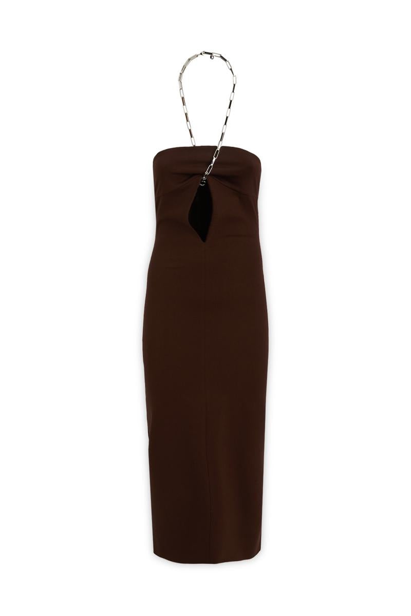 ''GIONA'' DARK BROWN MIDI DRESS