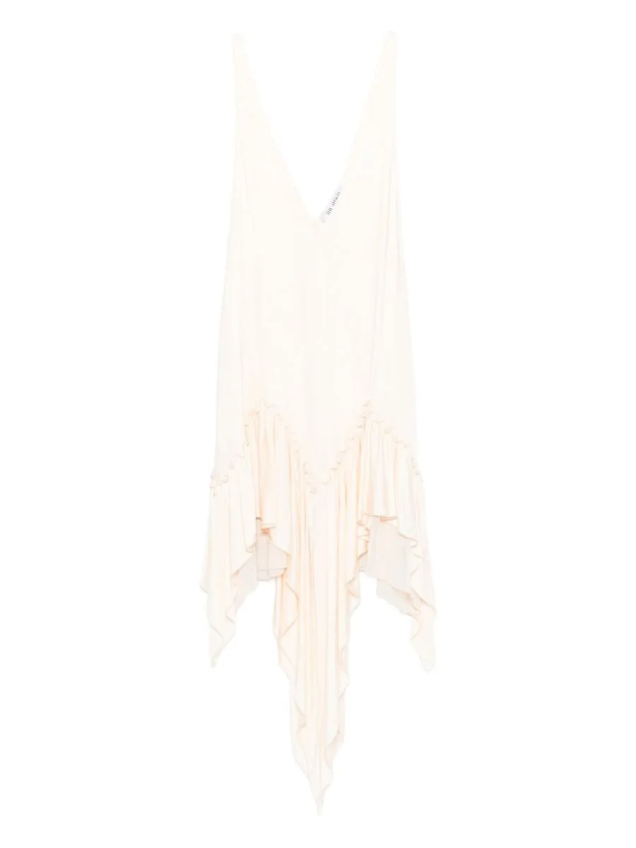 ivory ruffled hem asymmetric cut sleeveless v-neck viscose This piece fits true to size. We recommend you get your regular size Model is 1,75m / 5ft 8in wearing size 40 (IT) Gender: Women Material: SYNTHETIC->VISCOSE100.0 % SYNTHETIC->POLYESTER100.0 % Color: Beige Made in: Italy Product ID: 251WCA00445MIX060AA507 *Import tax/duty will be calculated at checkout (If applicable)