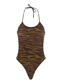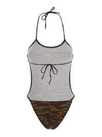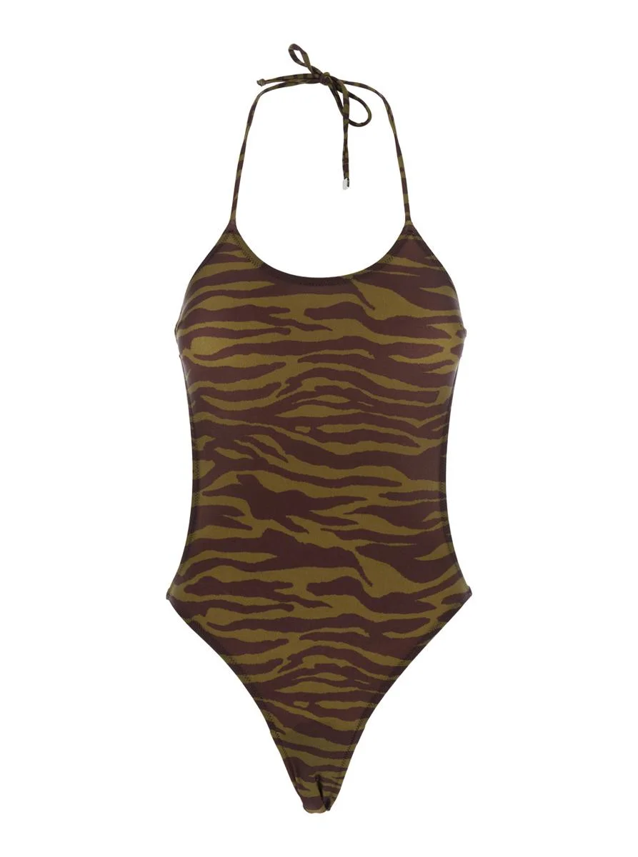 The Attico Green Swimsuit With Halterneck With Tie And All-Over Print In Tech Fabric Stretch Woman