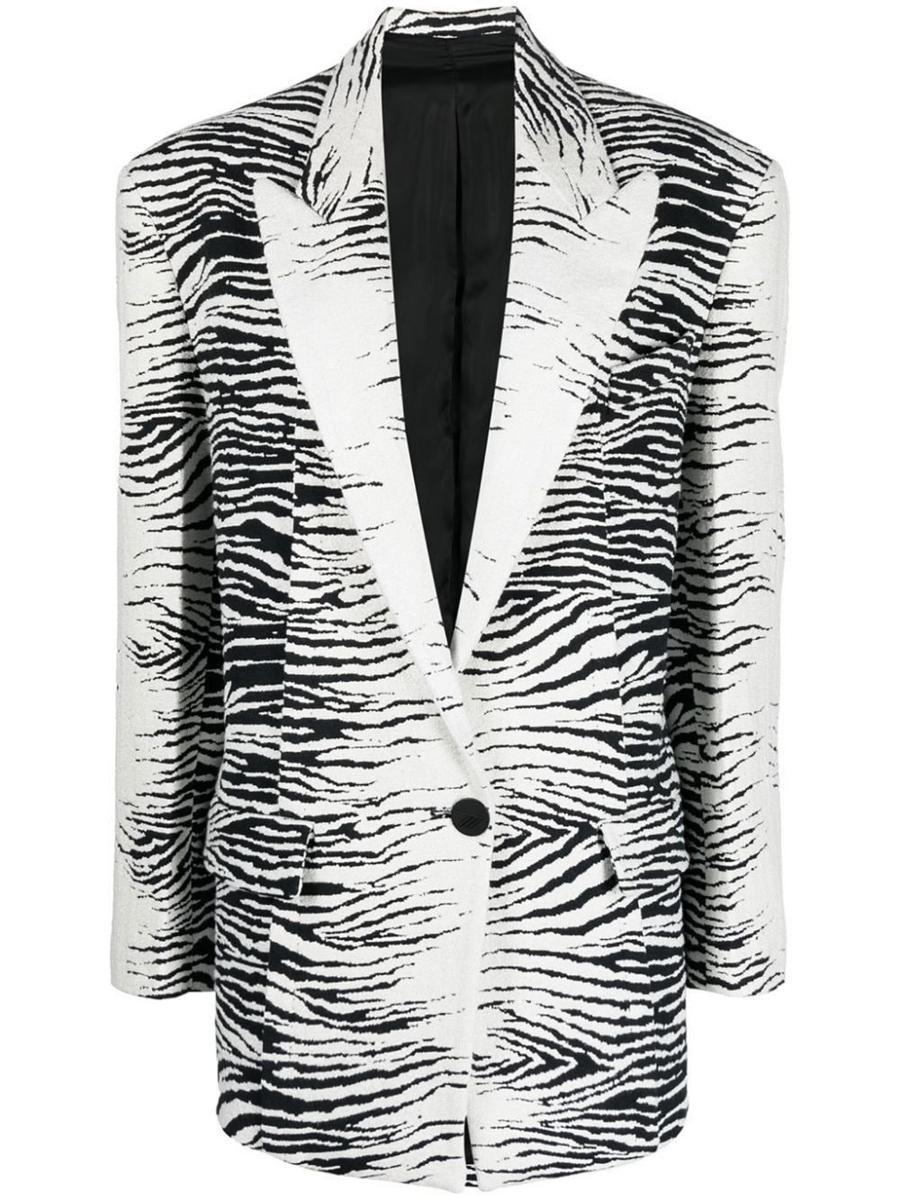 zebra-print single-breasted blazer from The Attico featuring black/white, cotton blend, zebra print, notched lapels, front button fastening, long sleeves and two side flap pockets. Gender: Women Material: COTTON 49% VISCOSE 34% POLYAMIDE 14% POLYESTER 3% Color: WHITE / BLACK Made in: IT Product ID: 231WCG46 C060 020 *Import tax/duty will be calculated at checkout (If applicable)