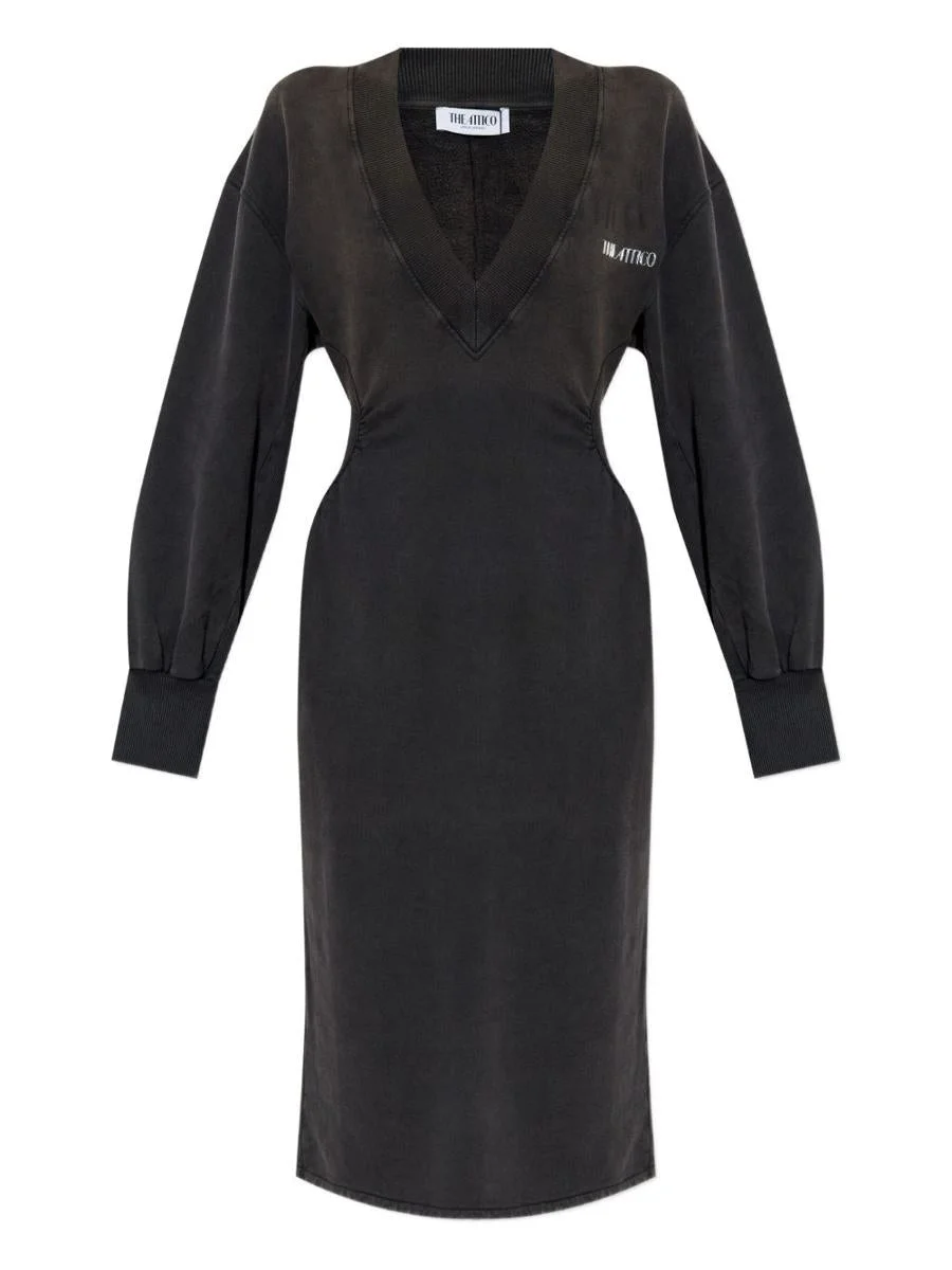 Deep ribbed V-neck; long sleeves, dropped shoulders, ribbed cuffs Rubberized logo print at chest Side gathered detailing at waist Washed effect Midi length Regular fit Faded black color 100% Cotton Made in Portugal Gender: Women Material: 100% COTTON Color: Black Made in: Portugal Product ID: 251WCW00251JJF003AA615 *Import tax/duty will be calculated at checkout (If applicable)