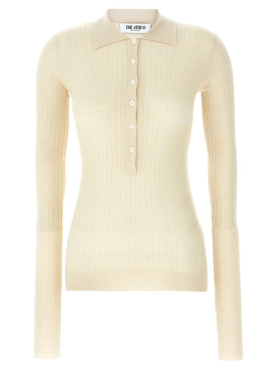 Ribbed cashmere and silk sweater, collar and buttons, front logo embroidery, long sleeves Gender: Women Material: 70% CASHMERE 30% SILK Color: WHITE Made in: RO Product ID: 250WCK00112507 *Import tax/duty will be calculated at checkout (If applicable)