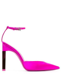 110mm perine satin pumps from the attico featuring fuchsia pink, calf leather, satin finish, pointed toe, v-shape vamp, branded insole, buckle-fastening ankle strap and high stiletto heel. Dimension: circumference: 20.0 centimetres, heel: 11.5 centimetres Gender: WOMEN Material: LINING COMPOSITION CALF LEATHER: 100.0%, SOLE COMPOSITION CALF LEATHER: 100.0%, OUTER COMPOSITION FABRIC: 100.0% Color: PINK Made in: IT Product ID: 231WS413 V007 008 *Import tax/duty will be calculated at checkout (If applicable)