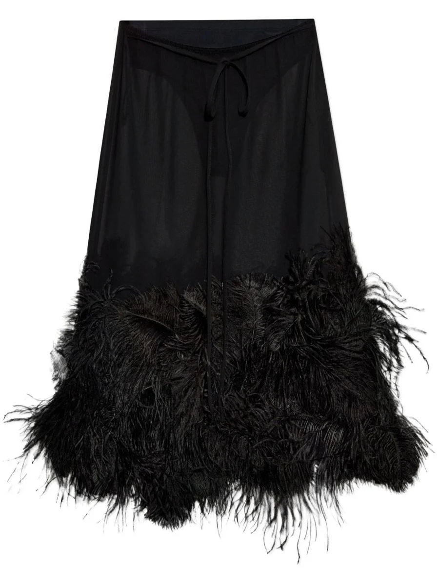 black slip-on style semi-sheer construction ostrich feather trim Gender: Women Material: POLYESTER 100%, ELASTANE 100%, OSTRICH FEATHER 100% Color: Black Made in: IT Product ID: 250WCS00264PAA085RA100 *Import tax/duty will be calculated at checkout (If applicable)