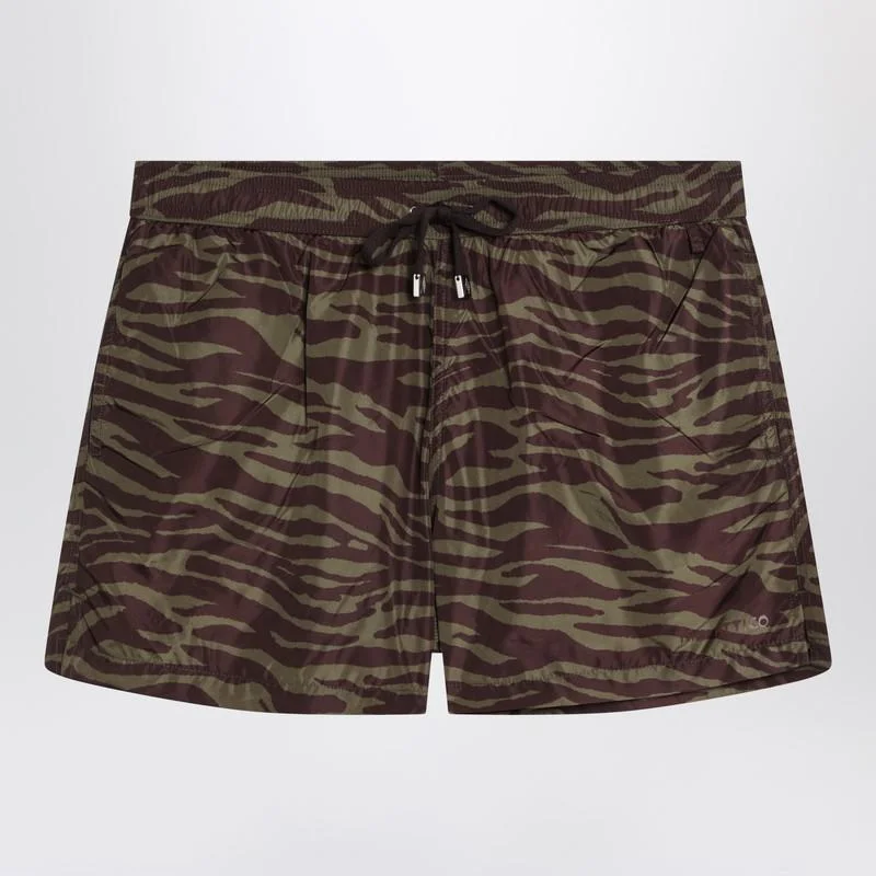 Short in The Attico in khaki green and brown zebra nylon, characterized by an elasticized waist with drawstring with metal ends, two side welt pockets, front logo lettering, and a back welt pocket. Gender: Women Material: Fabric I: 100% Polyamide / Fabric II: 100% Polyester Color: PRINT Made in: Portugal Product ID: 250WCQ00008PLL004P/Q_ATTIC-997 *Import tax/duty will be calculated at checkout (If applicable)
