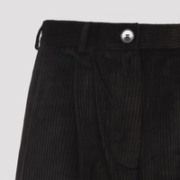 The Frankie Shop Dark Brown Cotton Norstrand Pleated Corduroy Trousers. Pure dark brown cotton trousers, front concealing fastening, front buttoned fastening, belt loops, side pockets, back slit buttoned pockets, straight hem, velvet design. Gender: Women Material: 100%COTTON Color: BROWN Made in: Imported Product ID: PAFS21143201_201 *Import tax/duty will be calculated at checkout (If applicable)