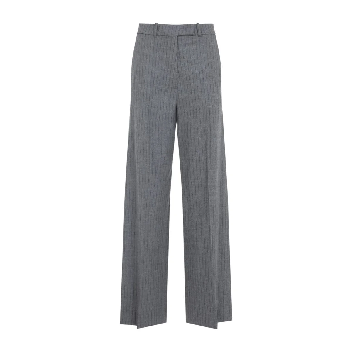 The Frankie Shop Brickell Striped Grey and Brown Wool Pants. Crafted from grey stretch wool, brown pinstriped pattern, belt loops, front concealed fastening, slant pockets, welt pocket on the back, wide leg, loose fit. Gender: Women Material: 96%WOOL 4%ELASTANE Color: GREY Made in: Imported Product ID: TTFS21109884_884 *Import tax/duty will be calculated at checkout (If applicable)
