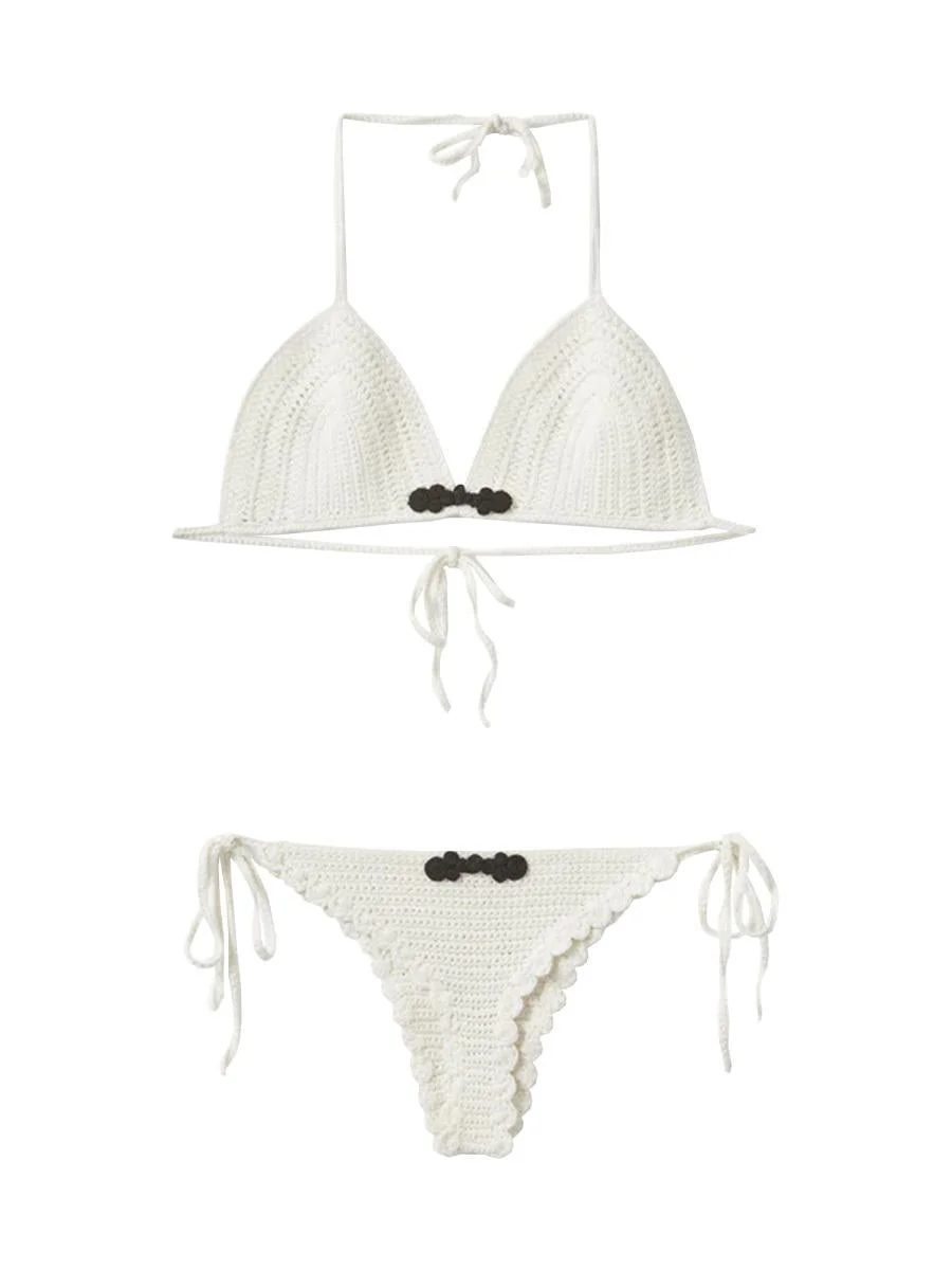 Plage Pointelle-Knit Organic Cotton Bikini ivory
