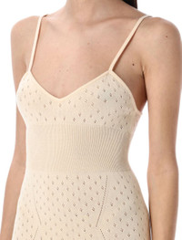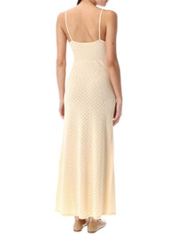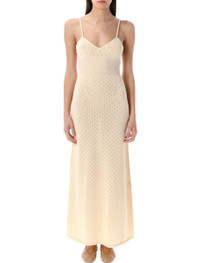 Organic cotton Tomorrow knit dress by The Garment. Featuring: V-neck Thin straps Open knit Fitted at waist Ankle length Model is 1,70 m and wears size 8 Gender: Women Material: 100% ORGANIC COTTON Color: Beige Made in: IMPORTED Product ID: 25P21191#020 *Import tax/duty will be calculated at checkout (If applicable)