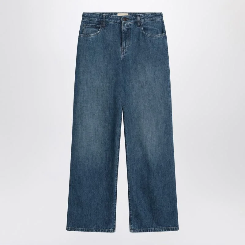 Wide jeans by The Row in blue cotton denim with a faded effect, featuring a front zip and button closure, belt loops, and five classic pockets. Gender: Women Material: 100% Cotton Color: BLUE Made in: Italy Product ID: 6525W3809/Q_THERO-WBE *Import tax/duty will be calculated at checkout (If applicable)