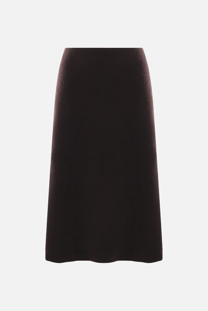 The Row A-line skirt crafted in dark brown cashmere and silk knit. It features elasticated waistband, side hook / concealed zip closure and unlined interior. Gender: Women Material: 60% GOAT CASHMERE 40% SILK Color: Brown Made in: IT Product ID: 8454Y391DBR *Import tax/duty will be calculated at checkout (If applicable)